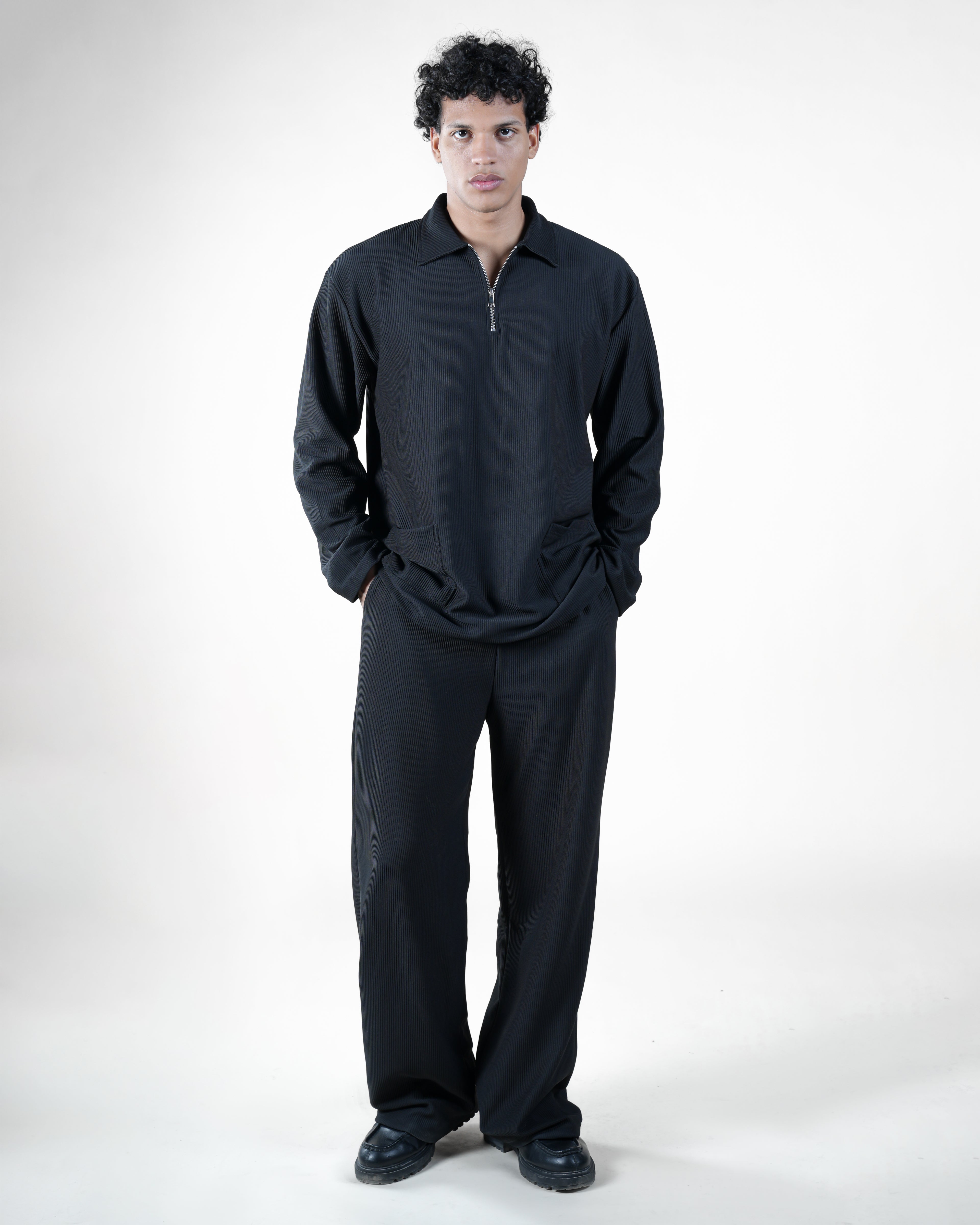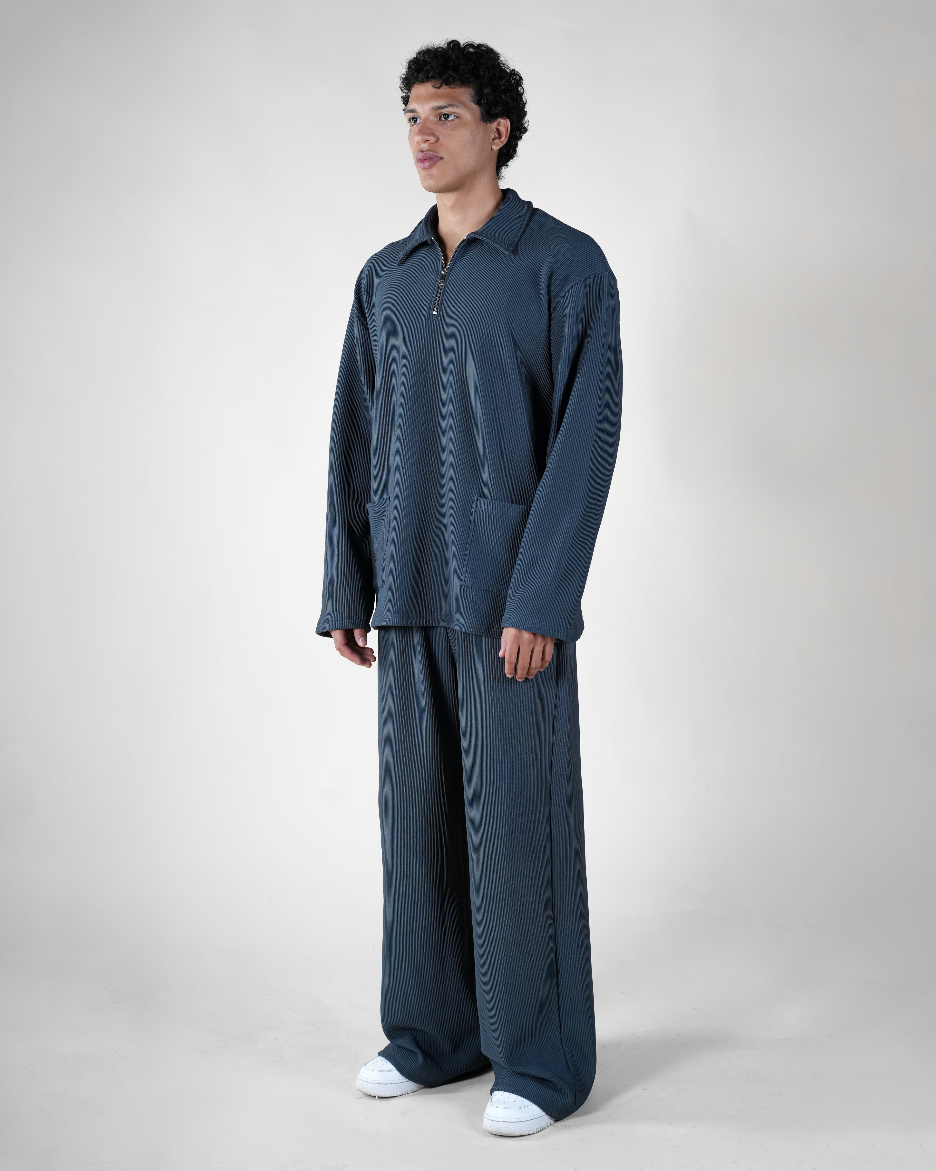The Textured Half-Zip Pullover Sweater combines minimal design with elevated comfort. Crafted from a soft ribbed fabric, it offers a relaxed fit that drapes effortlessly while maintaining structure. The half-zip collar adds a modern utilitarian detail, and the front patch pockets enhance both function and style. Perfect for layering or wearing on its own, this pullover embodies refined simplicity for everyday wear.