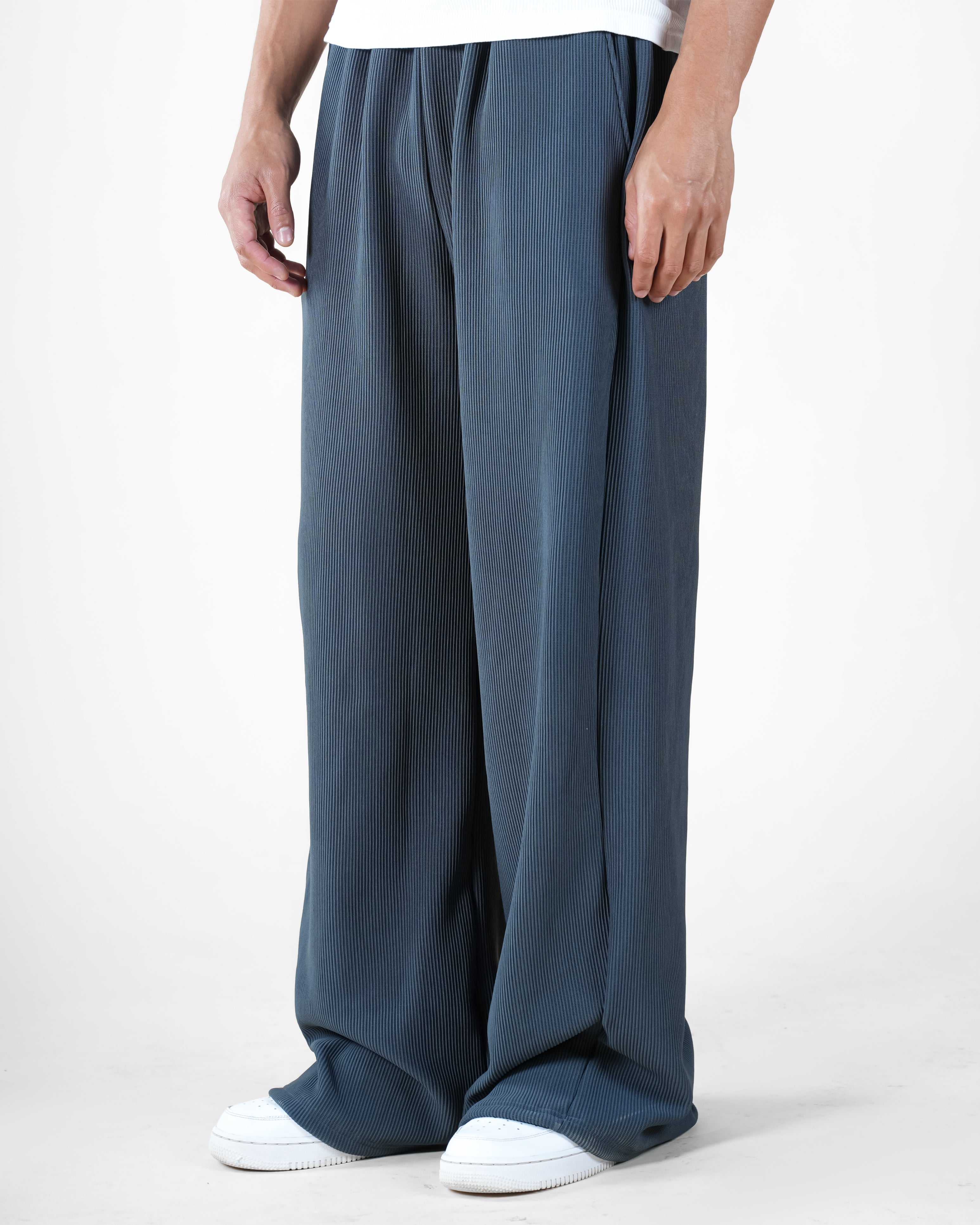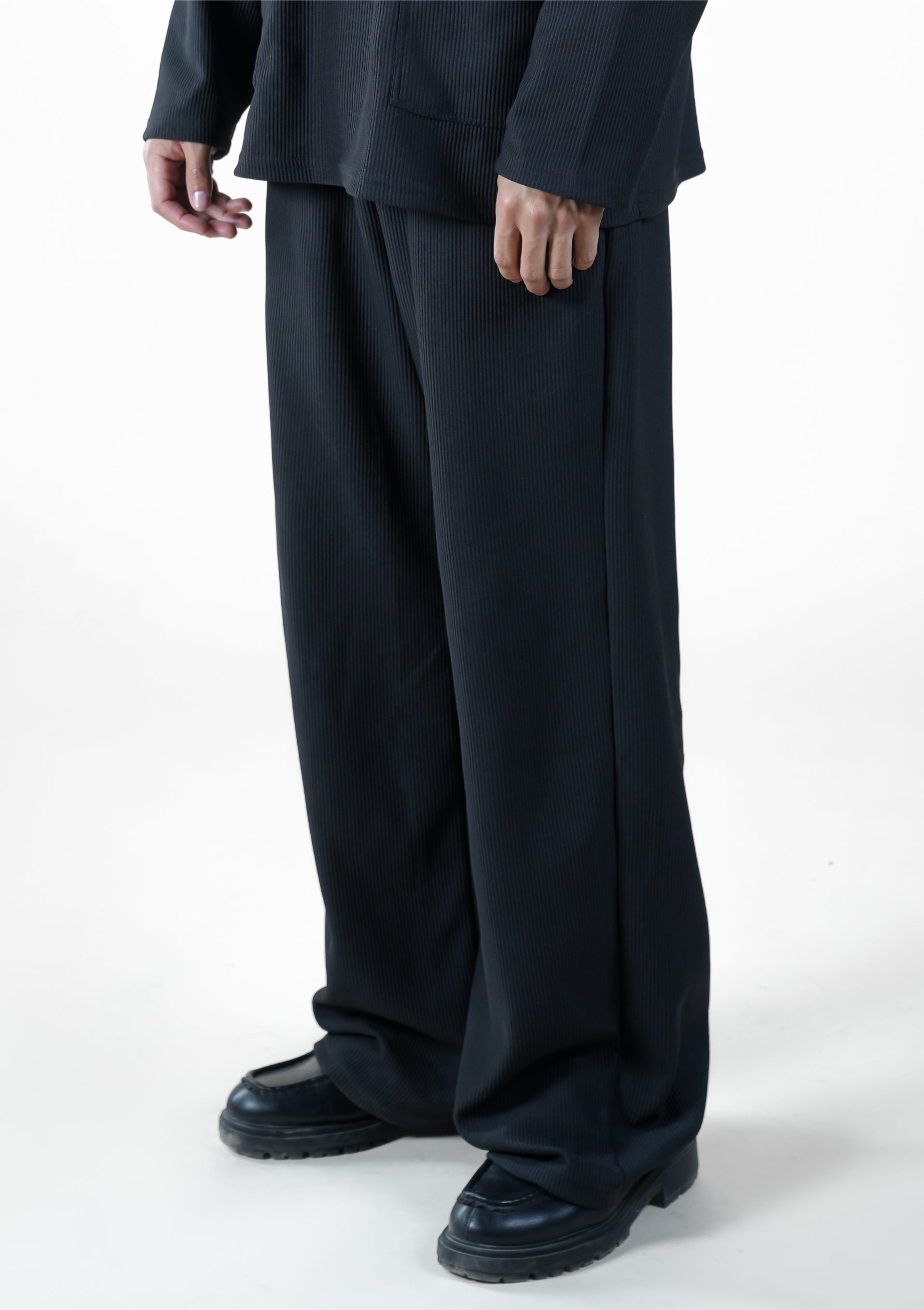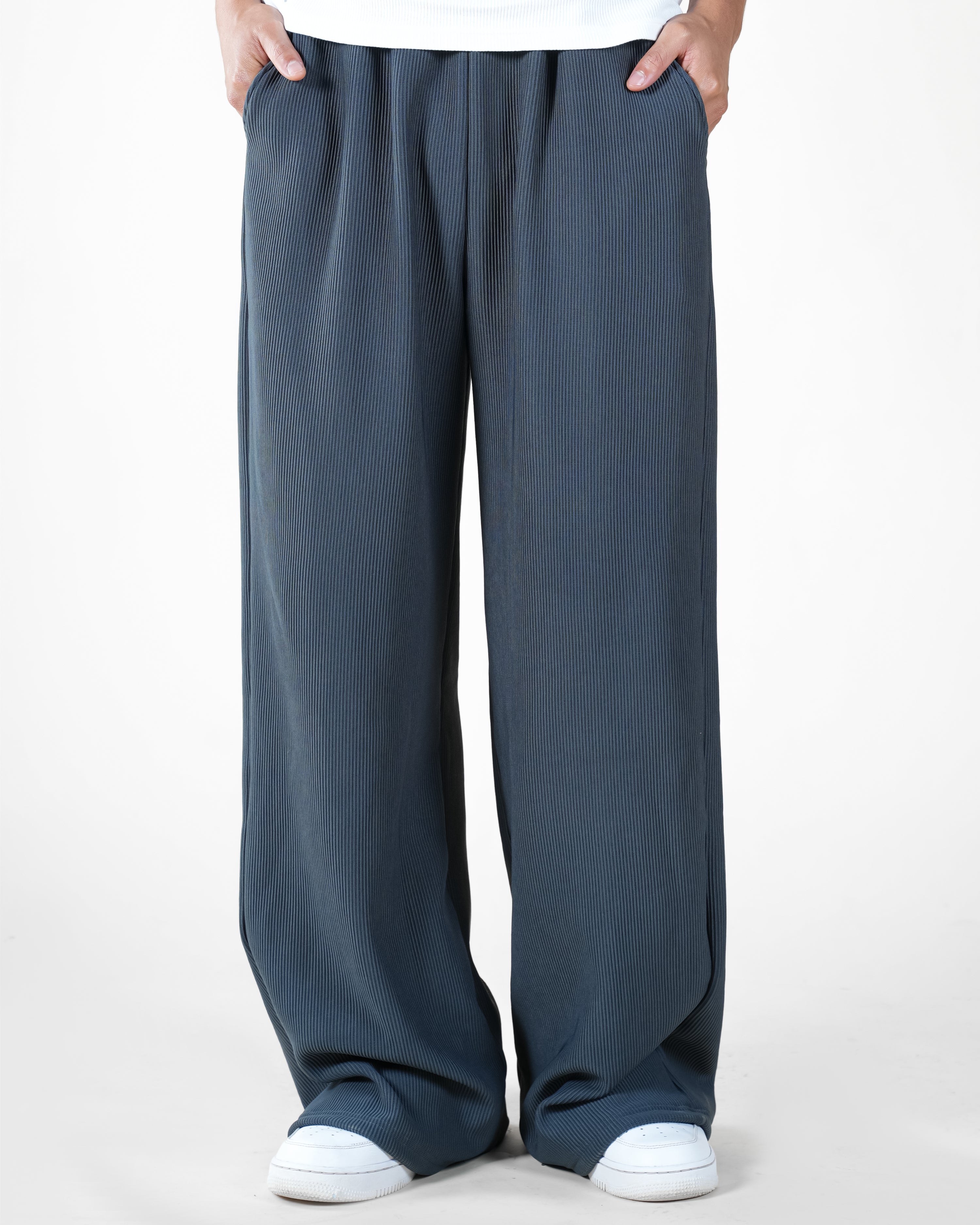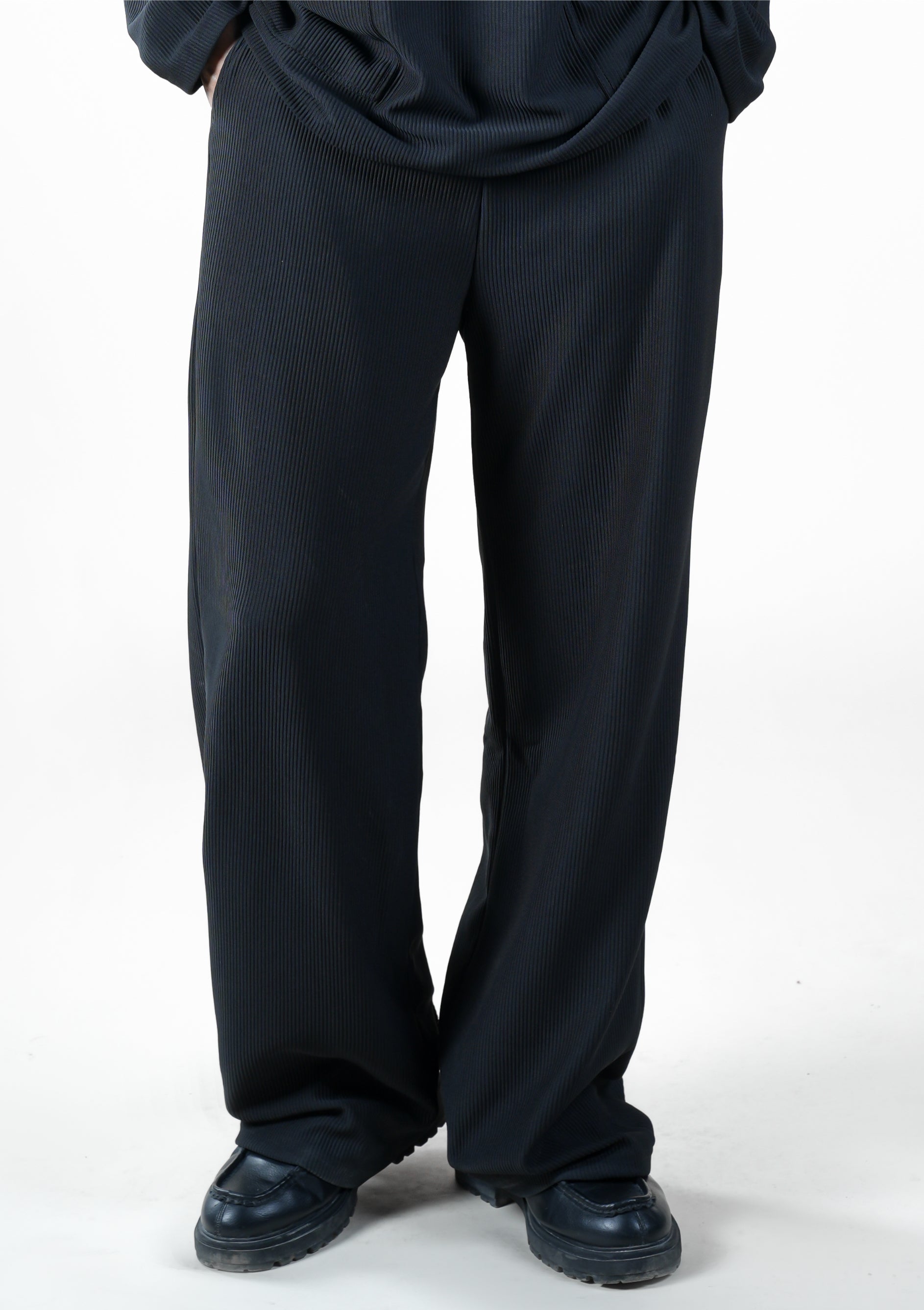 Designed for refined comfort, our Textured Relaxed-Fit Trousers bring a minimalist yet sophisticated edge to everyday wear. Made from a lightweight ribbed fabric, these trousers drape naturally for a fluid silhouette while maintaining structure and ease of movement. The relaxed fit and subtle texture elevate the look, making them versatile for both casual and semi-formal styling.