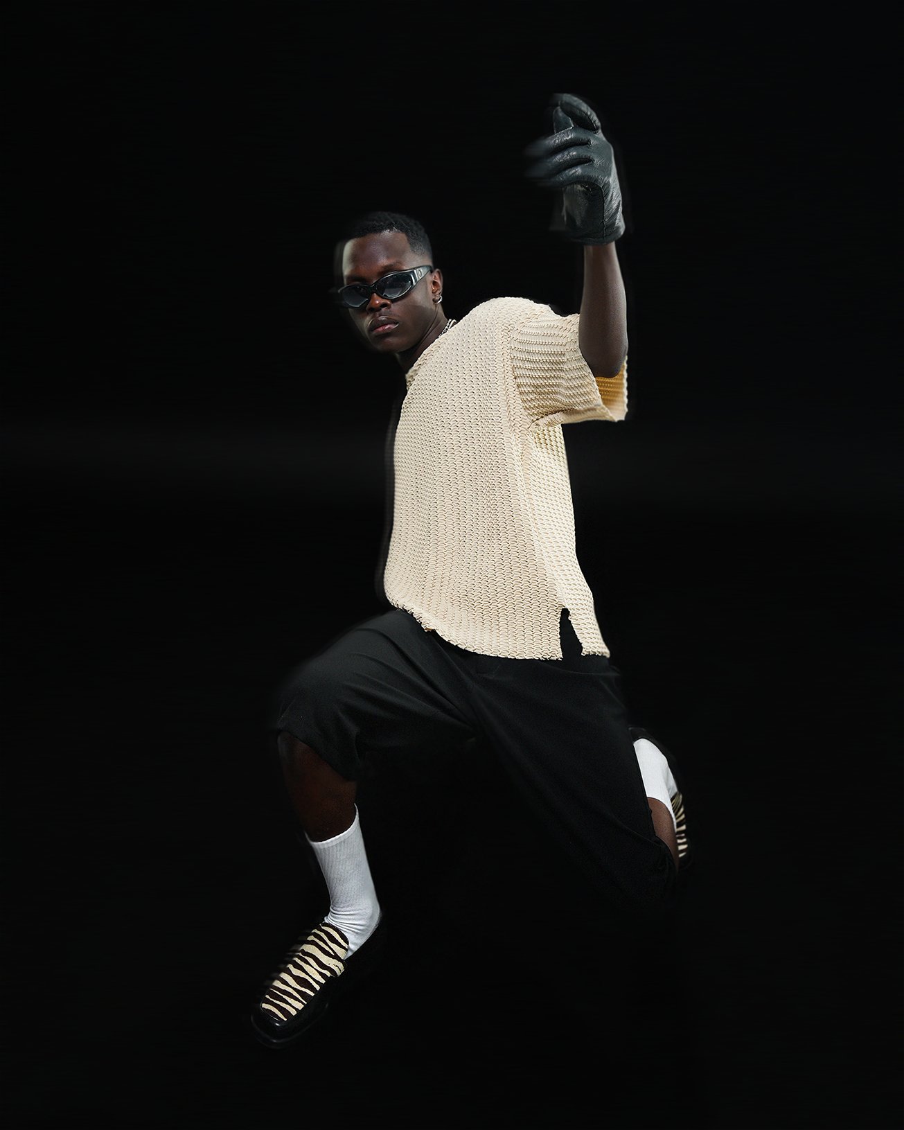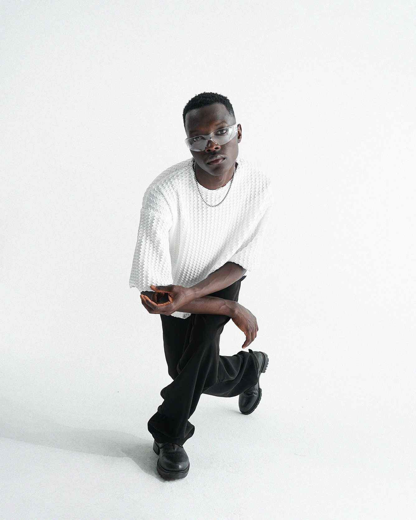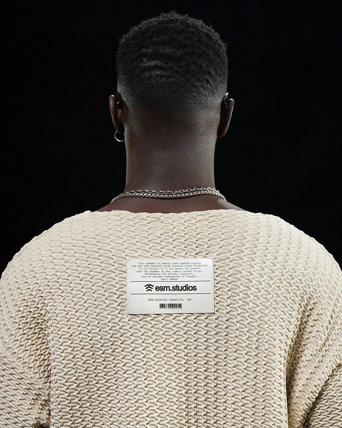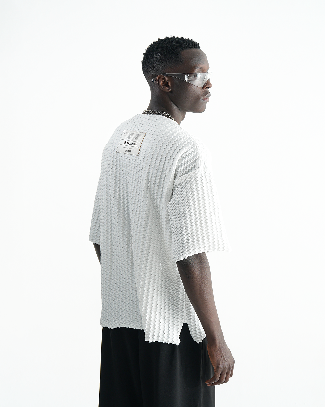 ECHO is an oversized knit shirt engineered with a subtle grid texture that catches light like sound. Its airy form and dropped-shoulder cut reflect rhythm in stillness—like a frequency worn across the body. Crafted from a breathable waffle-knit cotton blend that wears like presence.