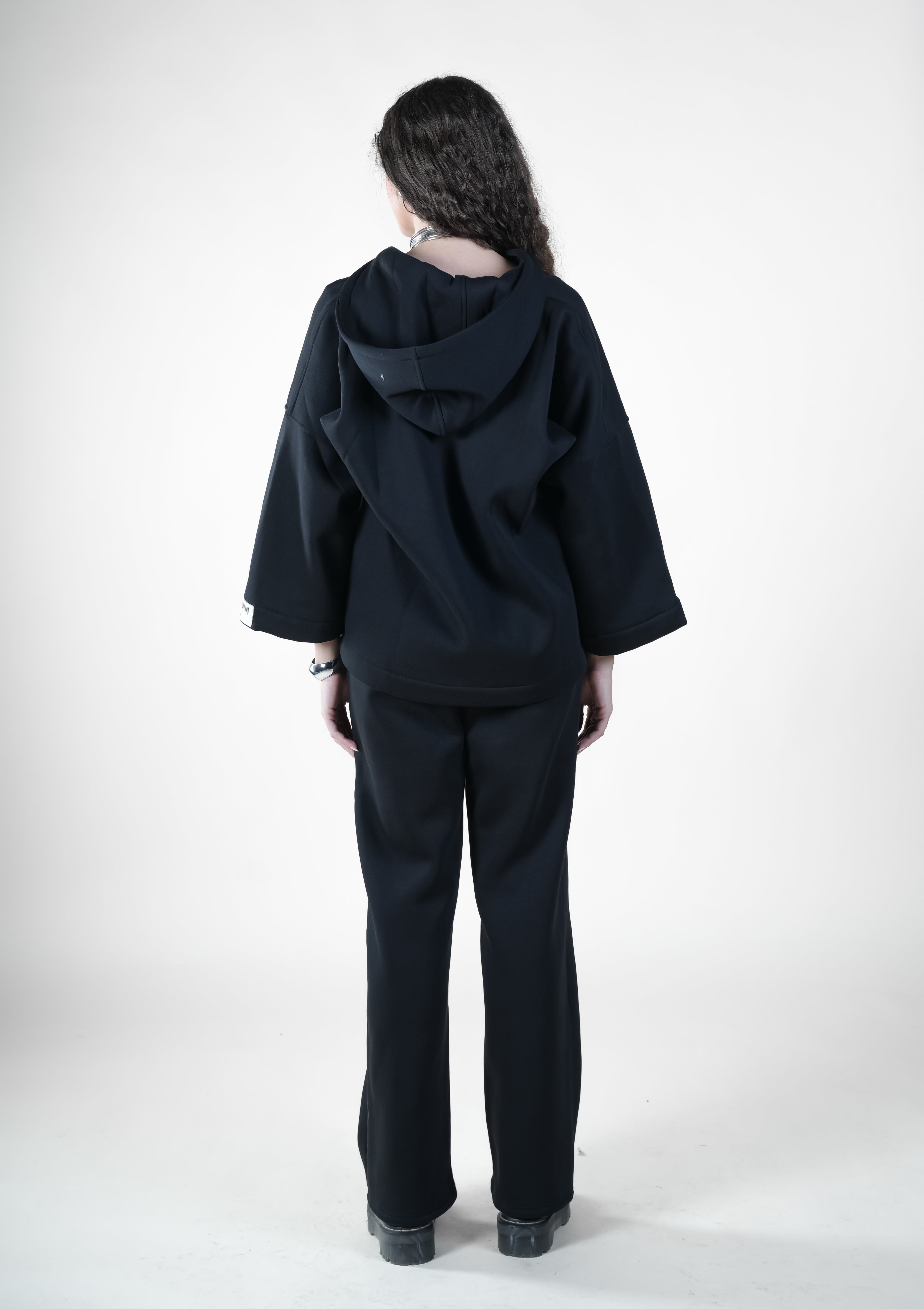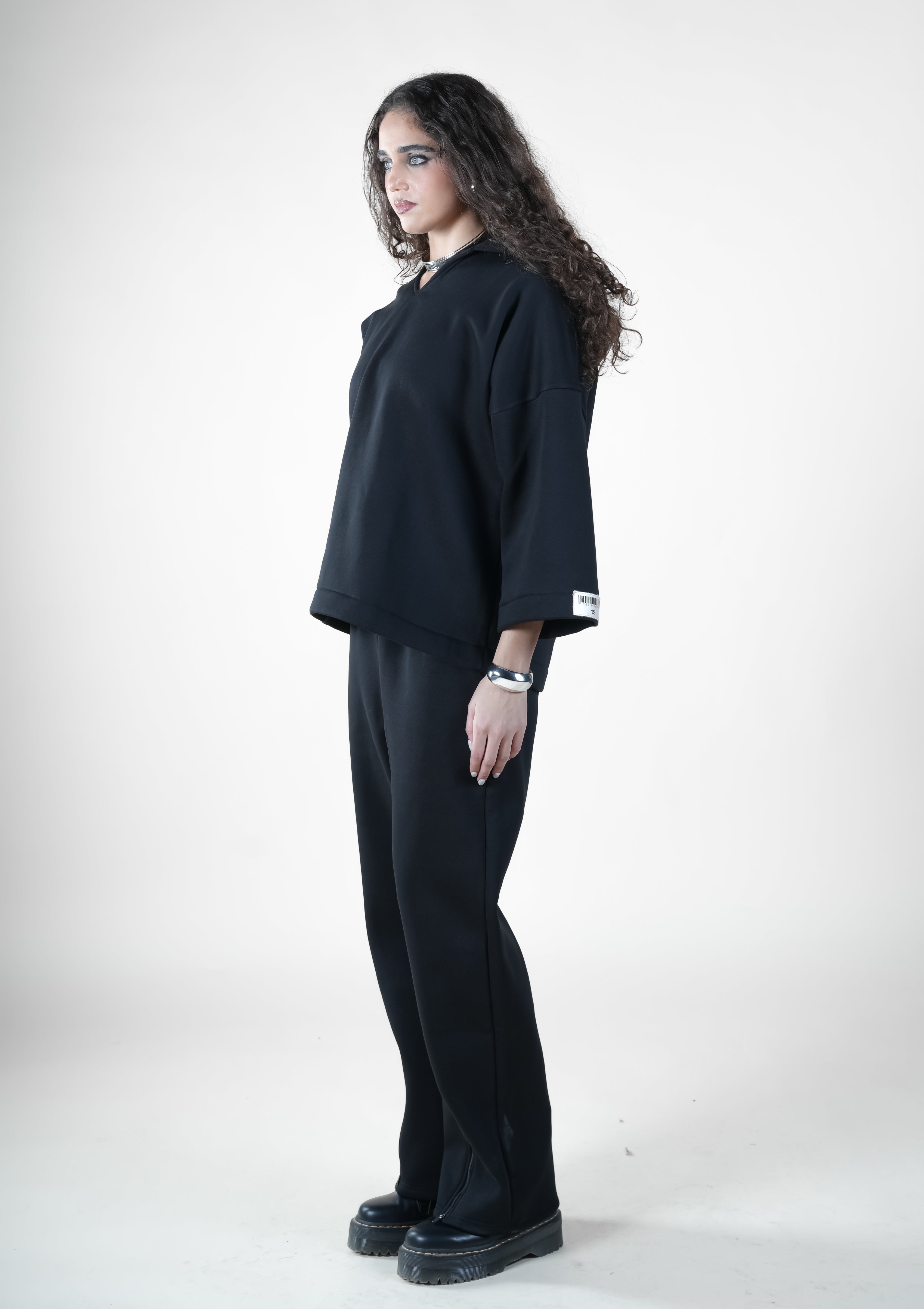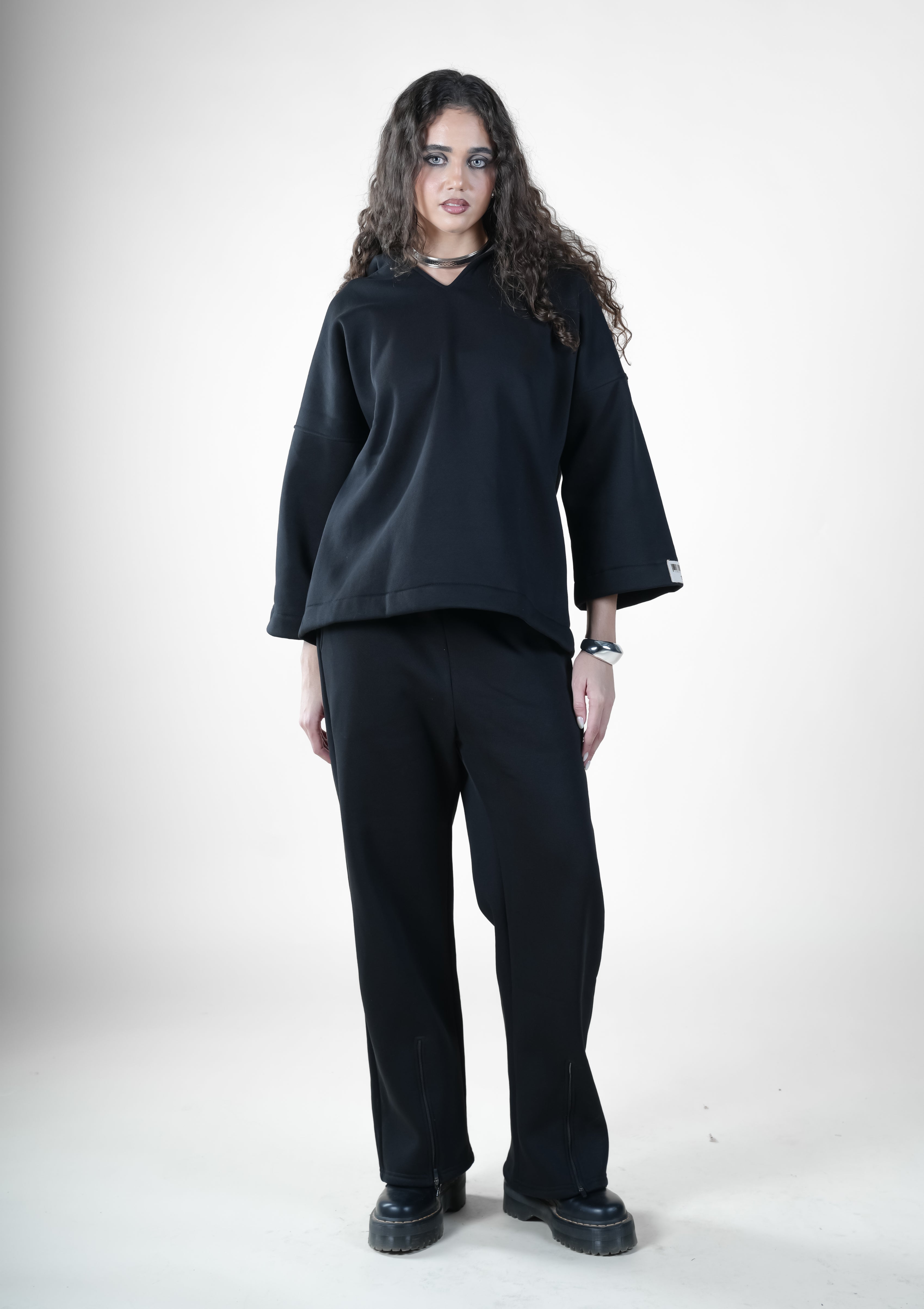 The Structured Oversized Set offers a clean, architectural silhouette designed for both comfort and presence. Made from a heavyweight, warm material, it features a relaxed sweatshirt with dropped shoulders and wide sleeves, paired with matching straight-leg pants. The set combines softness with structure, creating a modern uniform that moves effortlessly from indoor ease to outdoor statement. Finished with subtle label detailing, it embodies quiet confidence and refined simplicity.